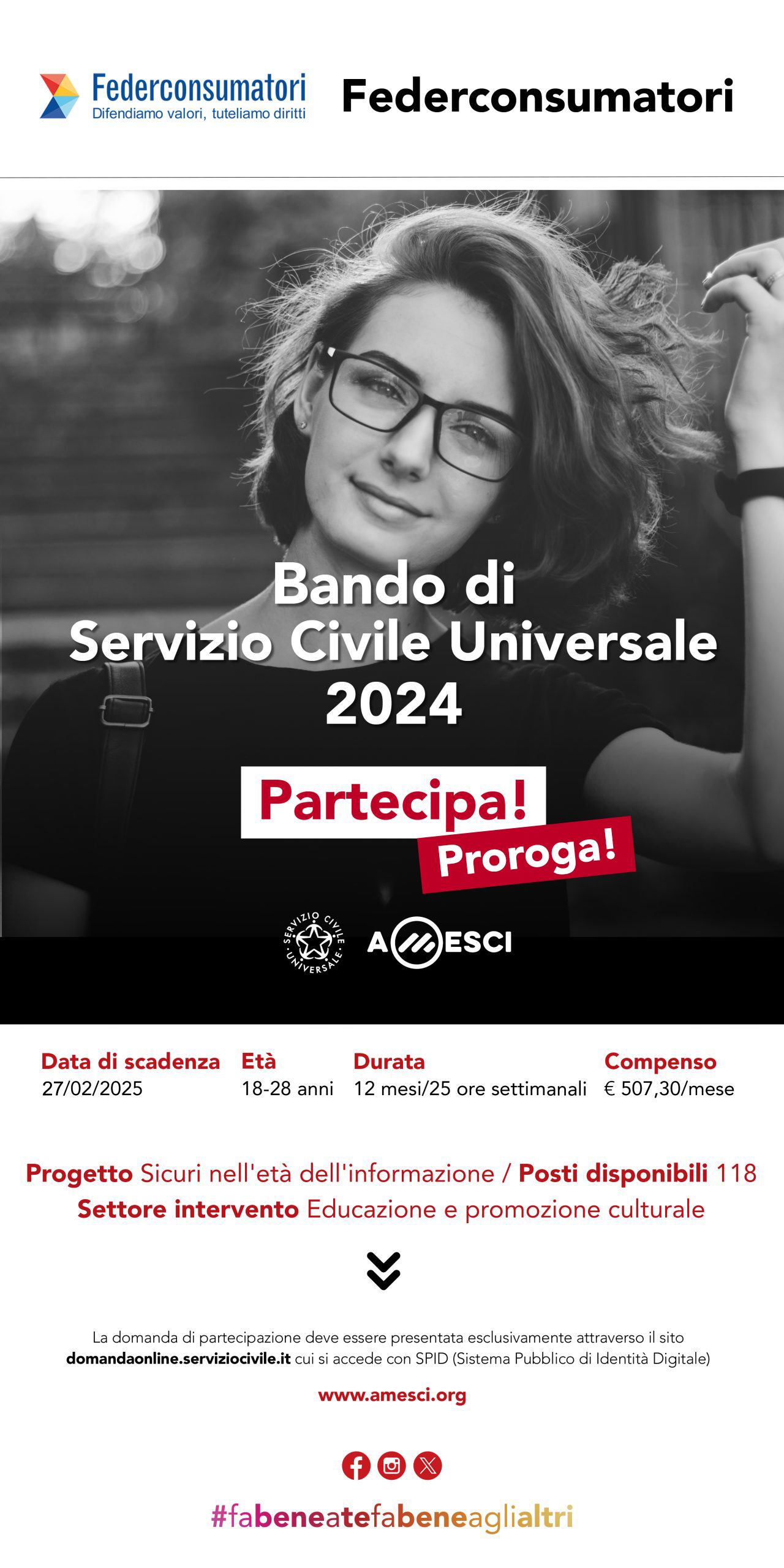 si potrà presentare fino al 27/02/2025, ore 14:00.